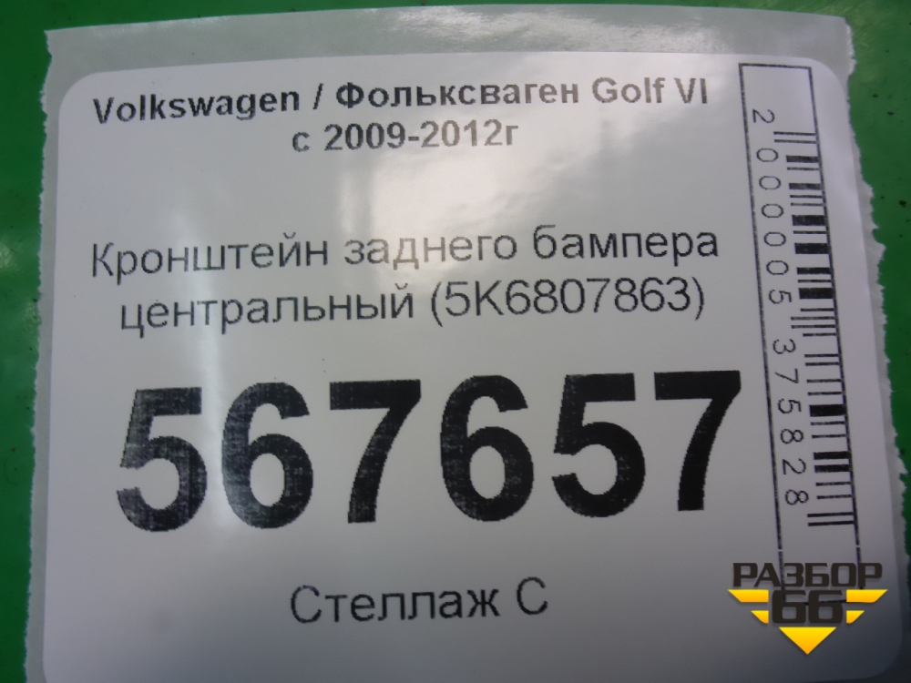 Кронштейн заднего бампера центральный (5K6807863) для Volkswagen Golf VI с 2009-2012г (Гольф 6) в Перми