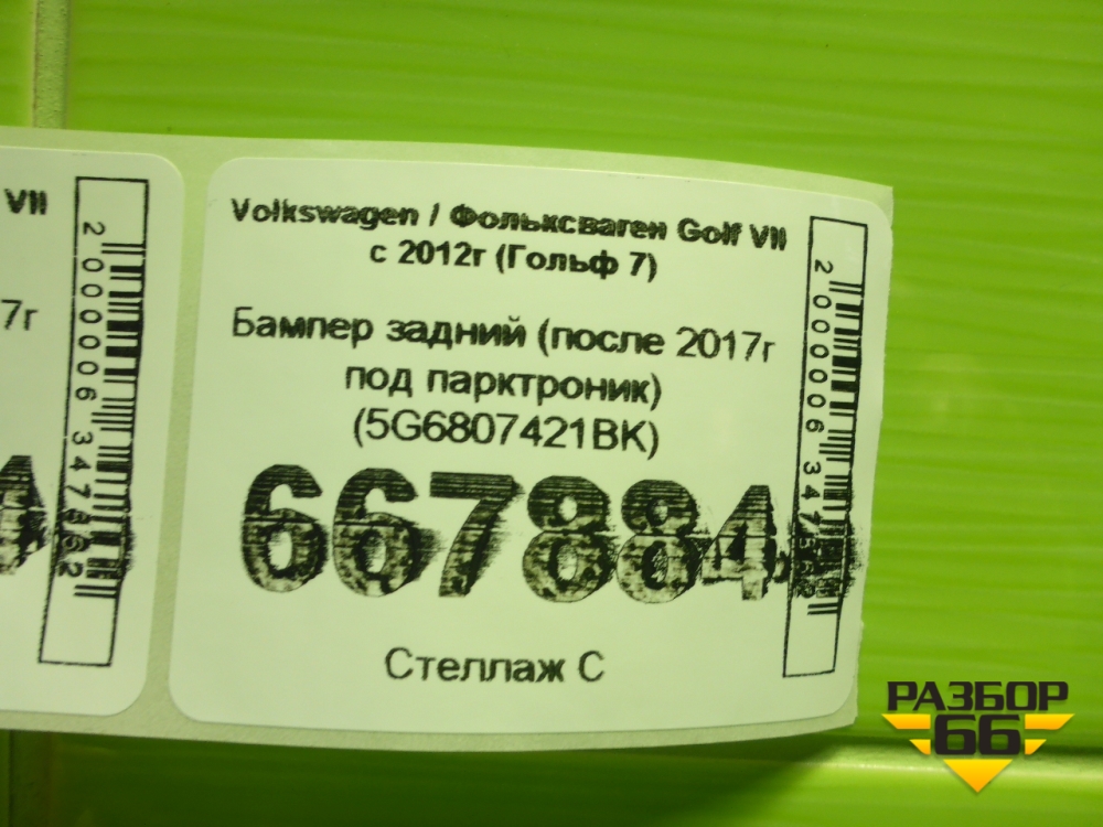 Бампер задний (после 2017г под парктроник) (5G6807421BK) для Volkswagen Golf VII с 2012г (Гольф 7) в Перми