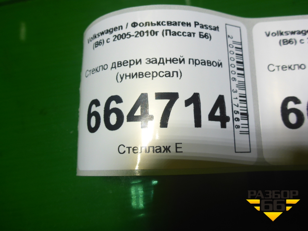 Стекло двери задней правой (универсал) для Volkswagen Passat (B6) с 2005-2010г (Пассат Б6) в Перми