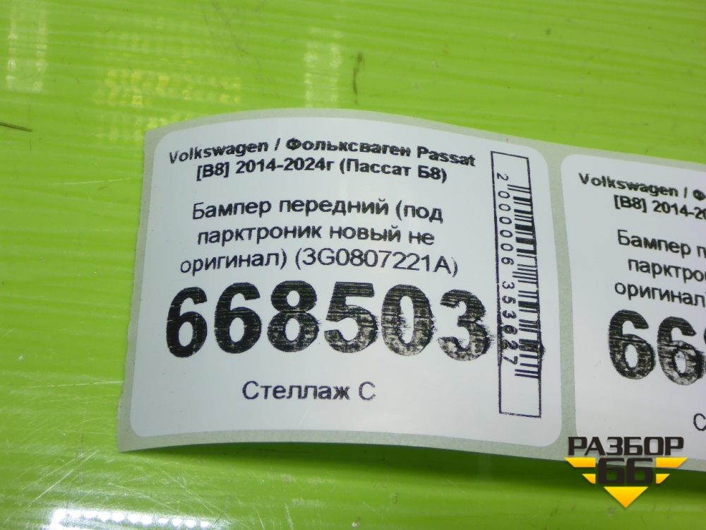 Бампер передний (под парктроник новый не оригинал) (3G0807221A) для Volkswagen Passat [B8] 2014-2024г (Пассат Б8) в Перми