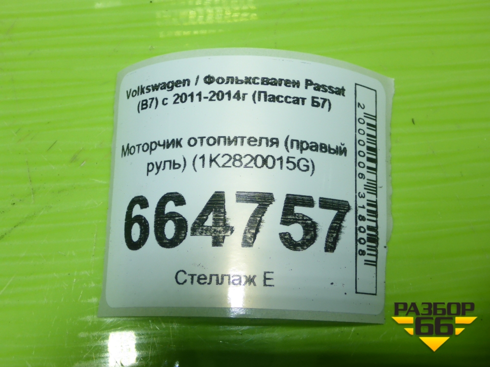 Моторчик отопителя (правый руль) (1K2820015G) для Volkswagen Passat (В7) с 2011-2014г (Пассат Б7) в Перми