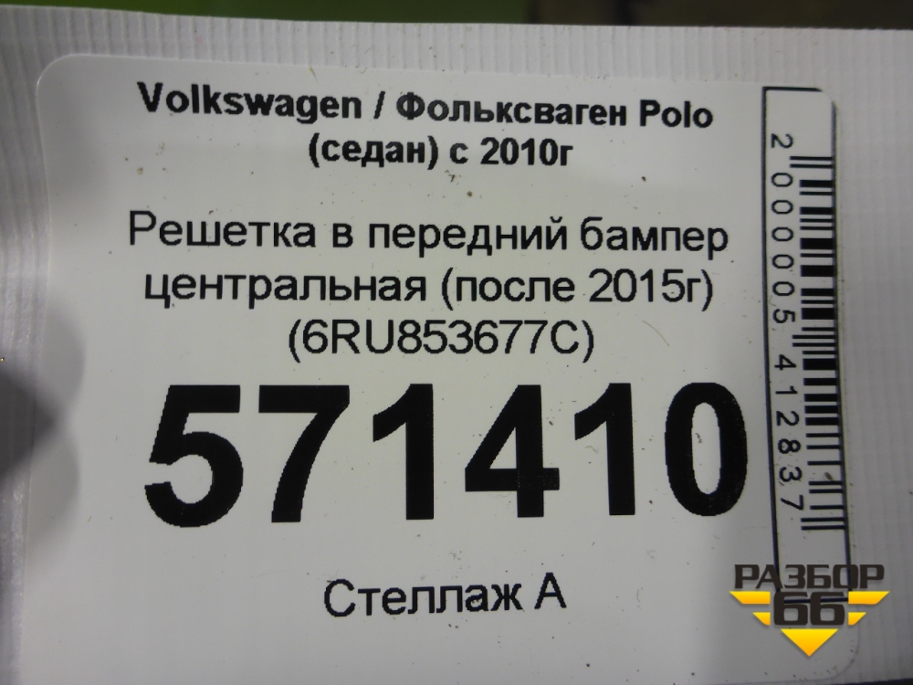 Решетка в передний бампер центральная (после 2015г) (6RU853677C) для Volkswagen Polo (седан) с 2010г (Поло) в Перми
