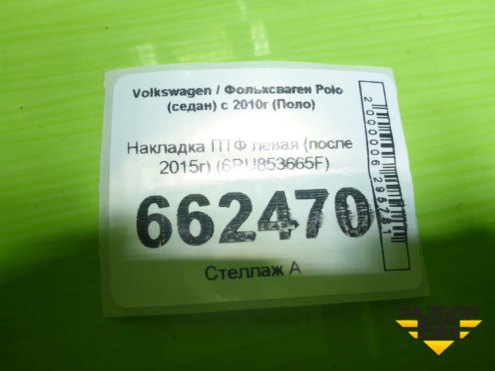 Накладка ПТФ левая (после 2015г) (6RU853665F) для Volkswagen Polo (седан) с 2010г (Поло) в Перми