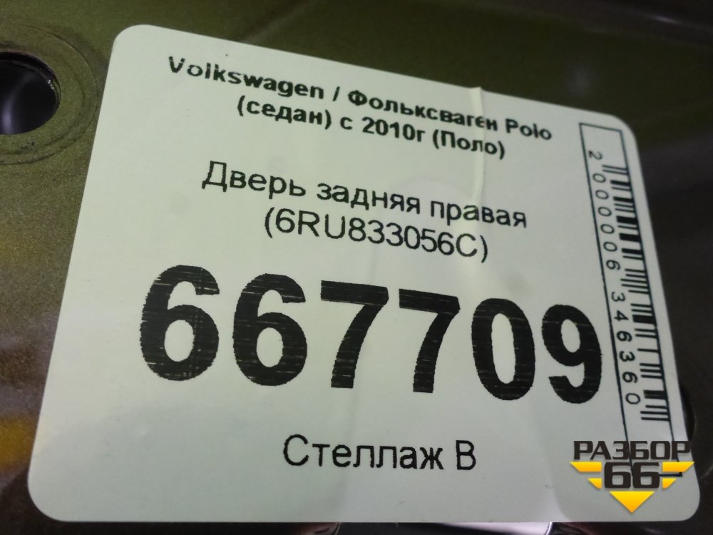 Дверь задняя правая (6RU833056C) для Volkswagen Polo (седан) с 2010г (Поло) в Перми