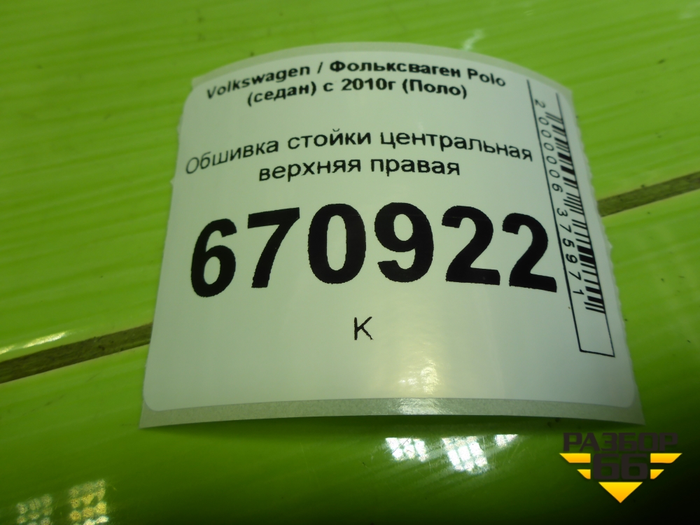 Обшивка стойки центральная верхняя правая (6RU867244E) для Volkswagen Polo (седан) с 2010г (Поло) в Перми