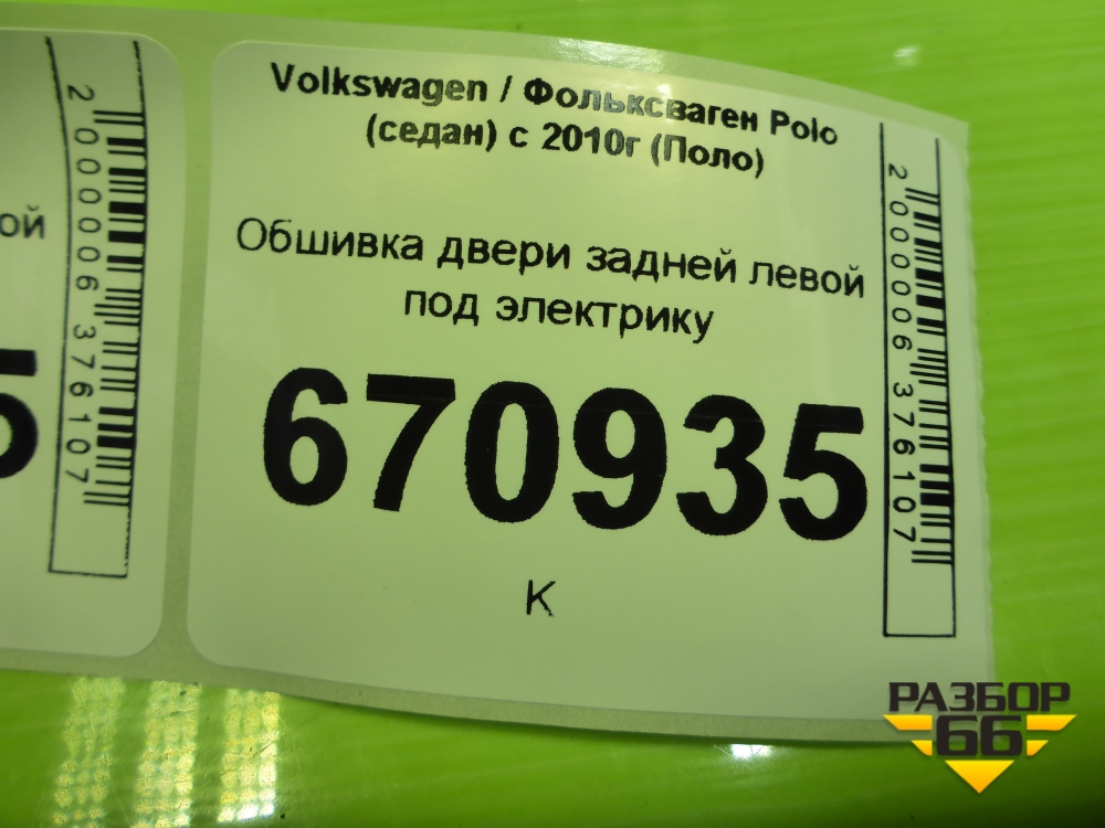 Обшивка двери задней левой под электрику (6RU867211) для Volkswagen Polo (седан) с 2010г (Поло) в Перми