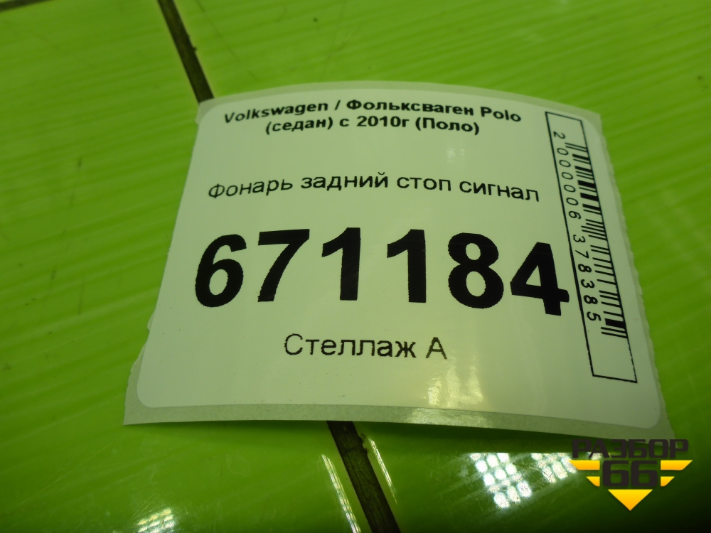 Фонарь задний стоп сигнал (6RU945087A) для Volkswagen Polo (седан) с 2010г (Поло) в Перми