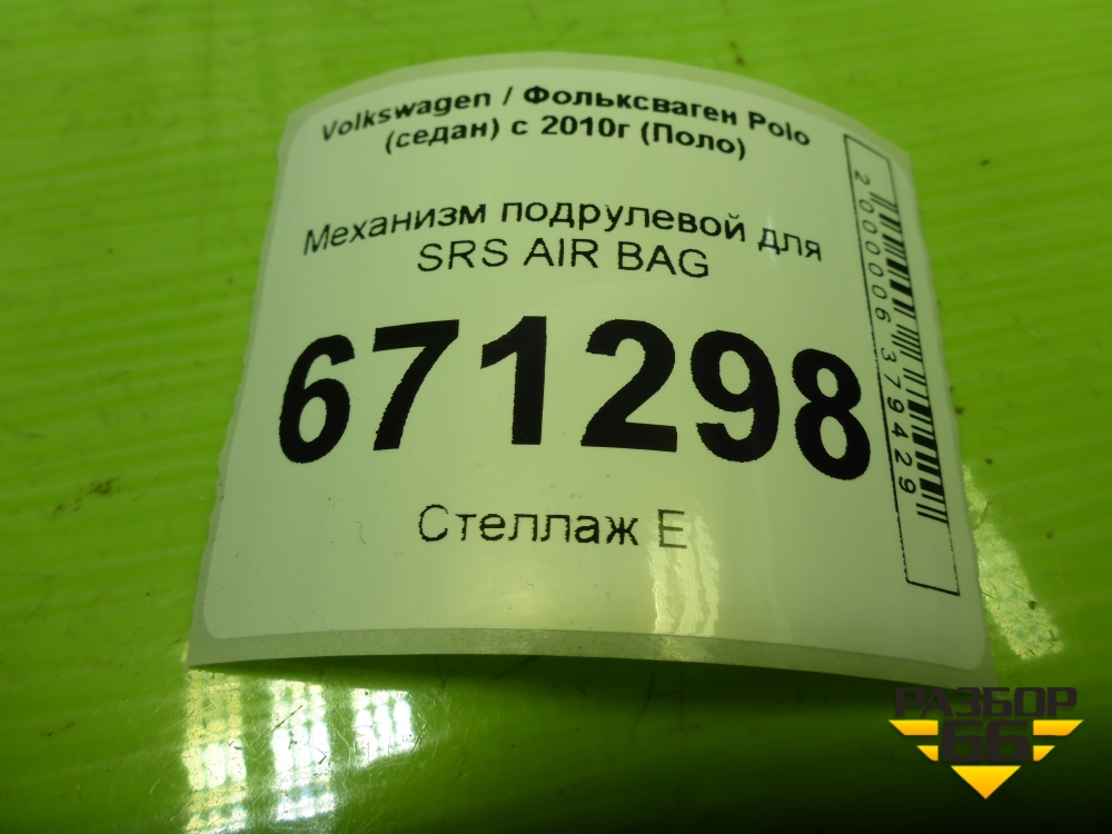 Механизм подрулевой для SRS AIR BAG (6R0959653) для Volkswagen Polo (седан) с 2010г (Поло) в Перми