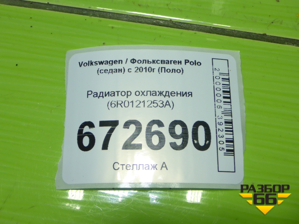 Радиатор охлаждения (6R0121253A) для Volkswagen Polo (седан) с 2010г (Поло) в Перми