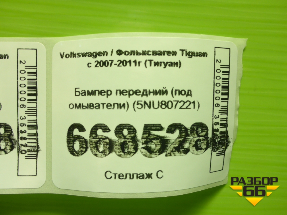 Бампер передний (под омыватели) (5NU807221) для Volkswagen Tiguan с 2007-2011г (Тигуан) в Перми