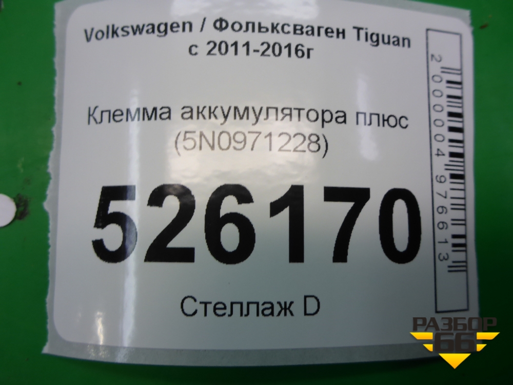 Клемма аккумулятора плюс (5N0971228) для Volkswagen Tiguan с 2011-2016г (Тигуан) в Перми