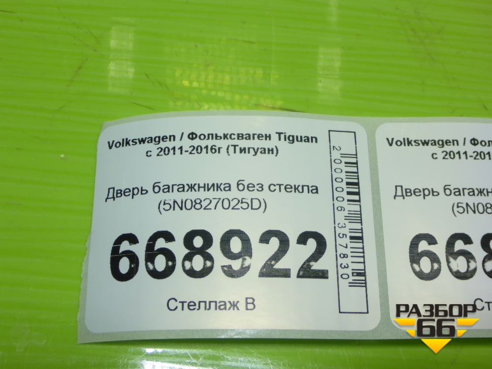 Дверь багажника без стекла (5N0827025D) для Volkswagen Tiguan с 2011-2016г (Тигуан) в Перми