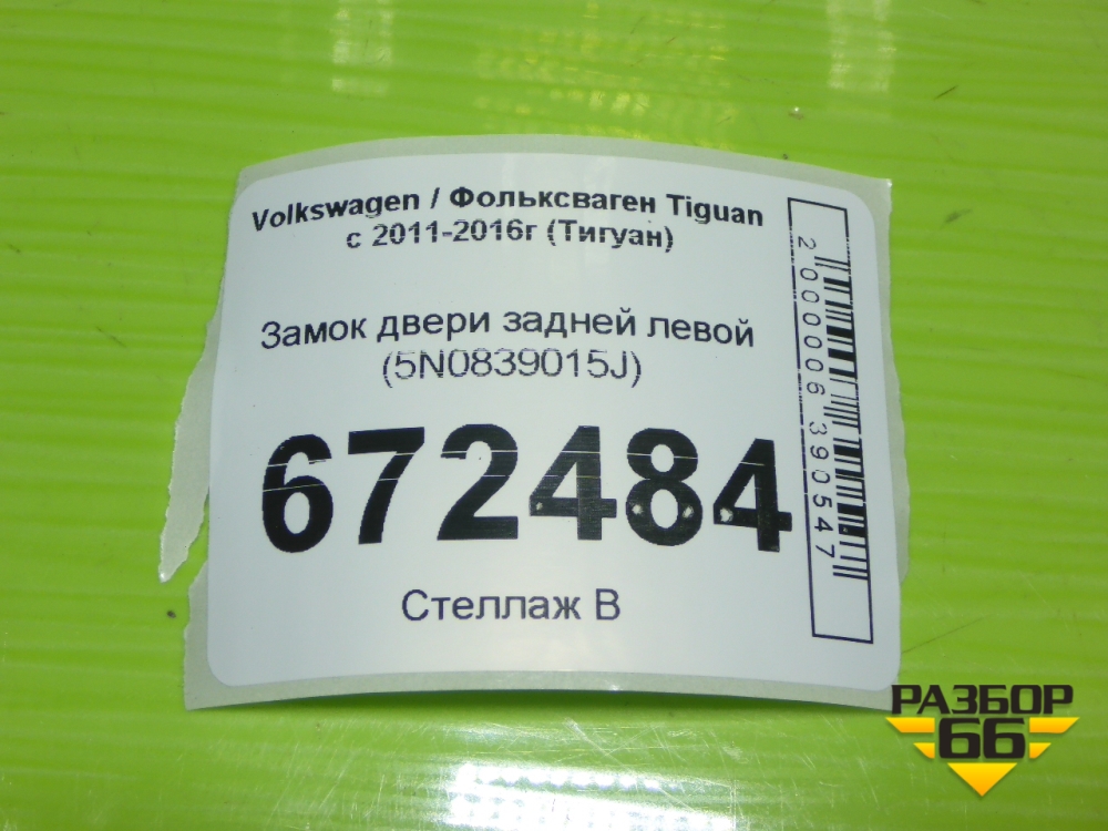 Замок двери задней левой (5N0839015J) для Volkswagen Tiguan с 2011-2016г (Тигуан) в Перми