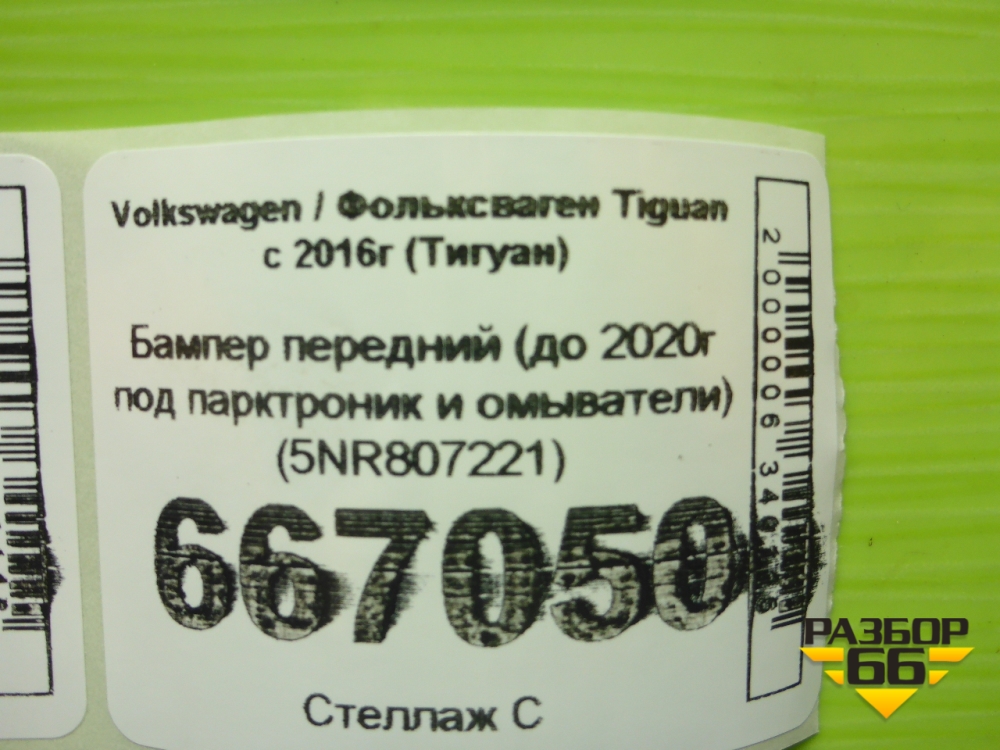 Бампер передний (до 2020г под парктроник и омыватели) (5NR807221) для Volkswagen Tiguan с 2016г (Тигуан) в Перми
