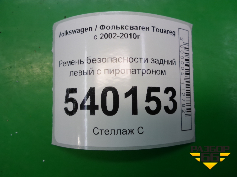 Ремень безопасности задний левый с пиропатроном для Volkswagen Touareg c 2002-2010г (Туарег) в Перми