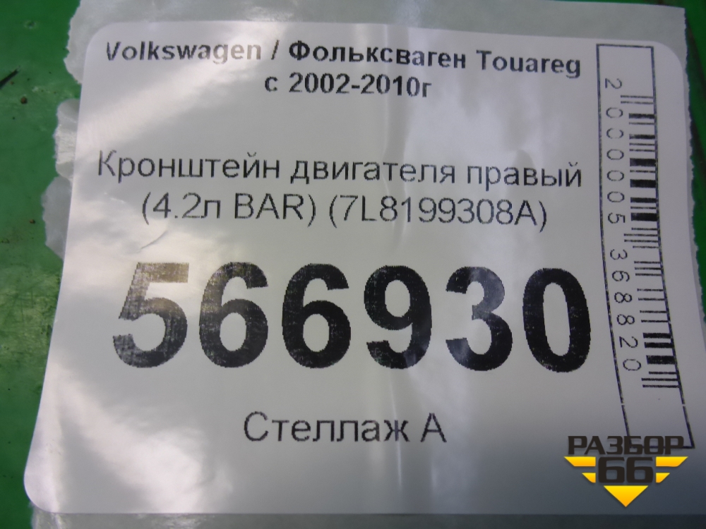 Кронштейн двигателя правый (4.2л BAR) (7L8199308A) для Volkswagen Touareg c 2002-2010г (Туарег) в Перми