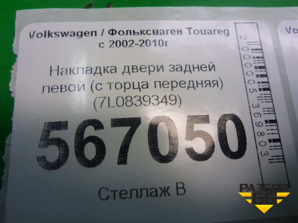 Накладка двери задней левой (с торца передняя) (7L0839349) (7L0839349B) для Volkswagen Touareg c 2002-2010г (Туарег) в Перми