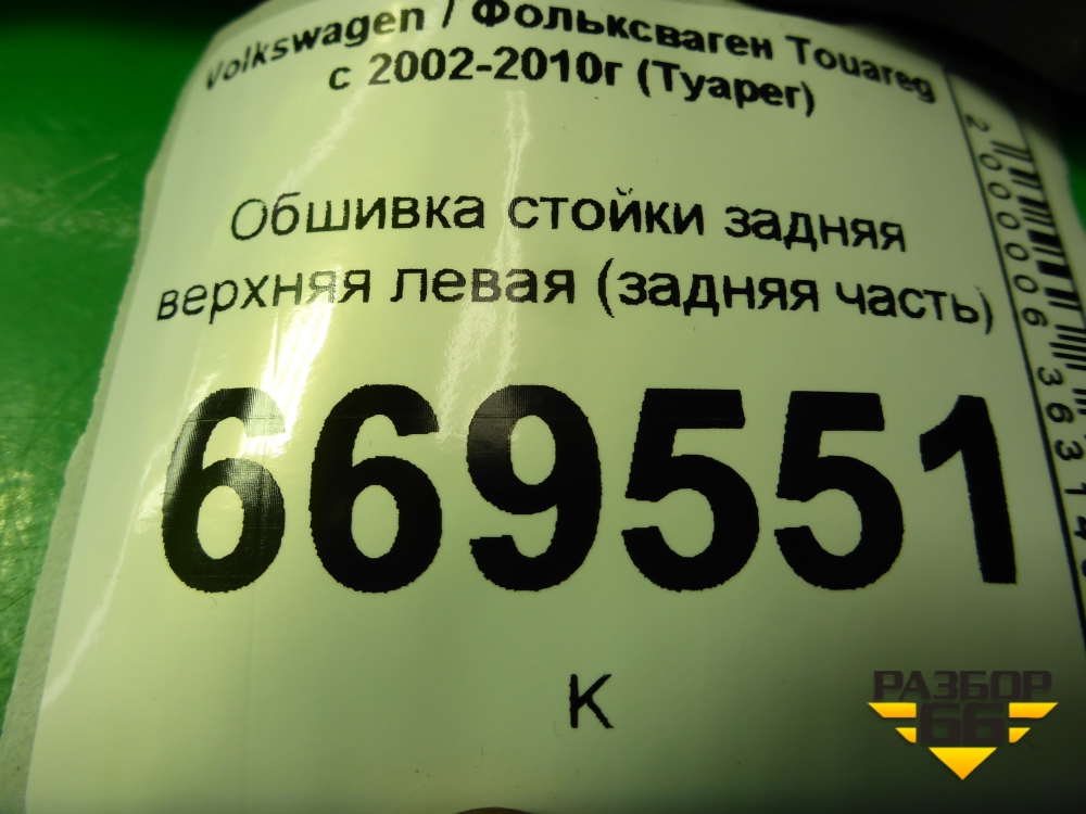 Обшивка стойки задняя верхняя левая (задняя часть) (7L6867245) для Volkswagen Touareg c 2002-2010г (Туарег) в Перми