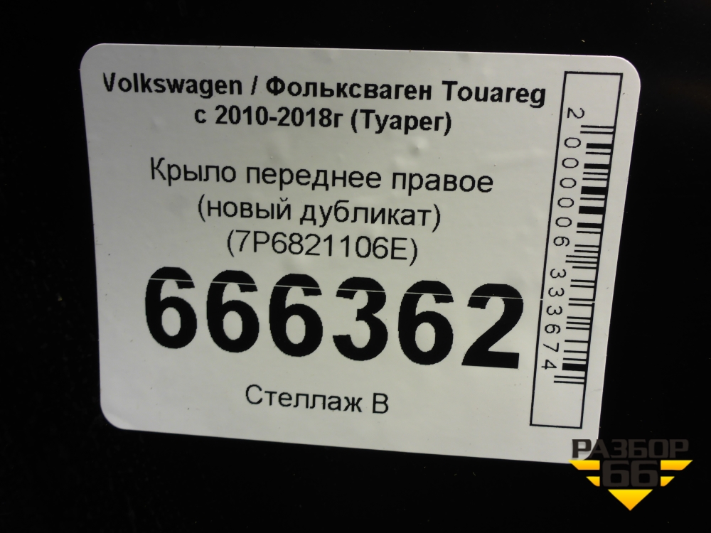 Крыло переднее правое (новый дубликат) (7P6821106E) для Volkswagen Touareg с 2010-2018г (Туарег) в Перми