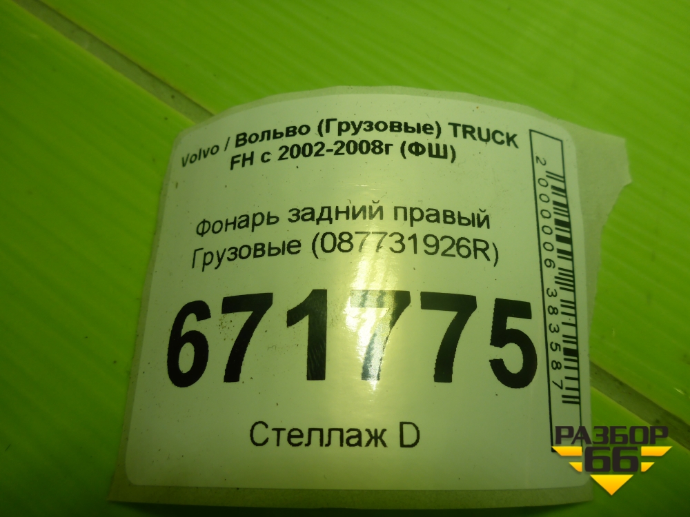 Фонарь задний правый (087731926R) для Volvo TRUCK FH с 2002-2008г (ФШ) в Перми