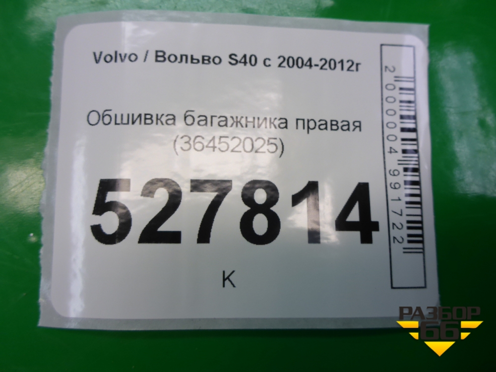 Обшивка багажника правая (36452025) для Volvo S40 с 2004-2012г (C40) в Перми