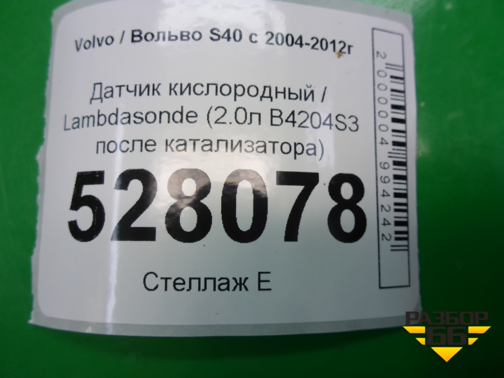 Датчик кислородный / Lambdasonde (2.0л B4204S3 после катализатора) для Volvo S40 с 2004-2012г (C40) в Перми
