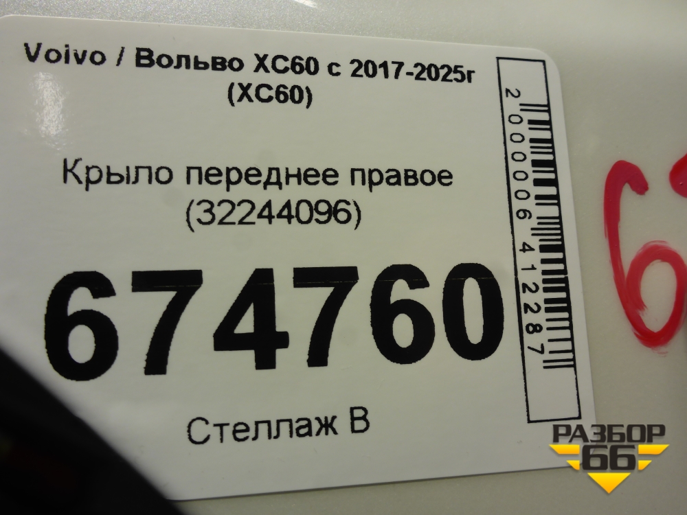Крыло переднее правое (32244096) для Volvo XC60 с 2017-2025г (ХС60) в Перми